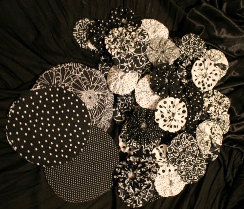 Love yoyos, after my young daughter passed, our two little granddaughters (8 & 9yrs) and I made them endlessly, placing a vintage button in the center of each. We created a quilt of 750 memories. Love your black and white ones!!